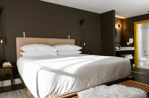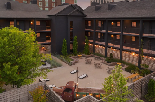 Perfectly located in the heart of Nashville, Bode Hotel is a folk-inspired boutique hotel offering beautiful, comfortable, and modern rooms. As hotel prices can be particularly high in this lively and popular destination, you will appreciate staying at this lovely hotel, which remains relatively affordable throughout the year. If prices rise, we recommend a more budget-friendly—though less charming—alternative: Town Plaza Suites by Marriott Nashville Midtown (from €59 per person).